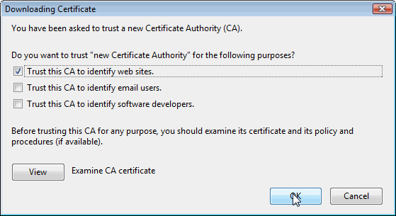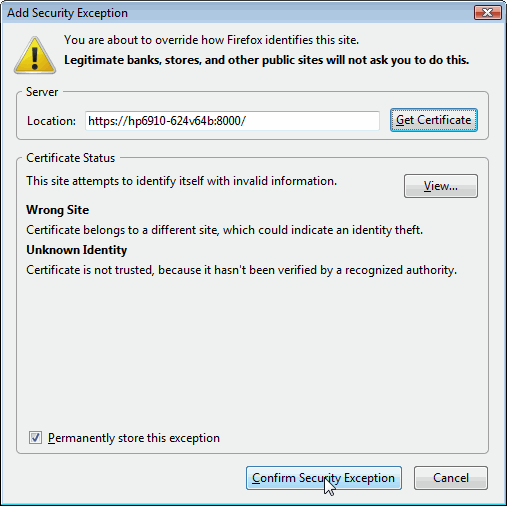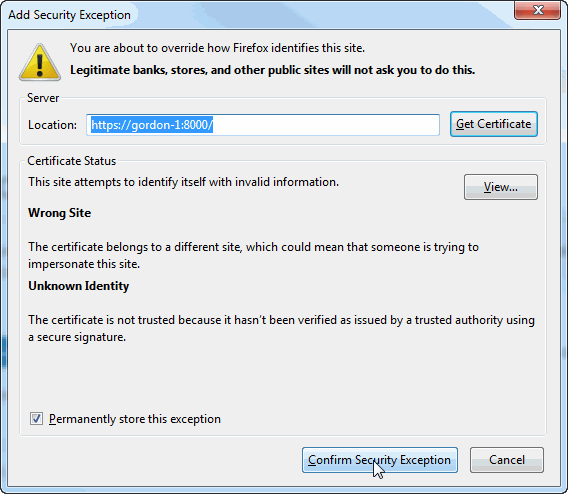 You should now be able to access the SSL-enabled server from your Mozilla Firefox browser.